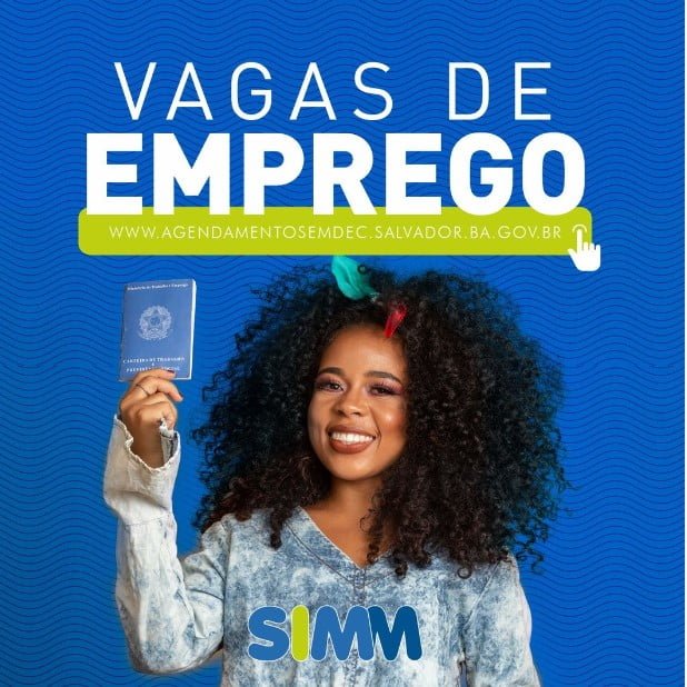 O Serviço Municipal de Mão de Obra (Simm) oferece 43 vagas de emprego e estágio para esta sexta-feira (12) em Salvador. Os candidatos deverão acessar o site www.agendamentosemdec.salvador.ba.gov.br para agendar o atendimento, a partir das 17h30.