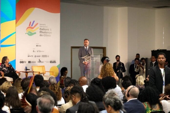Começou nesta segunda-feira (4) o Seminário Internacional sobre Cultura e Mudança do Clima, um evento paralelo à reunião do Grupo de Trabalho de Cultura do G20, que acontece no Centro de Convenções de Salvador. No primeiro dia do evento, autoridades nacionais, pesquisadores e visitantes de todo o mundo se reuniram para debater os efeitos da crise climática, os desafios de adaptação e como a cultura pode ser uma aliada na criação de soluções sustentáveis e na mobilização social para enfrentá-los.