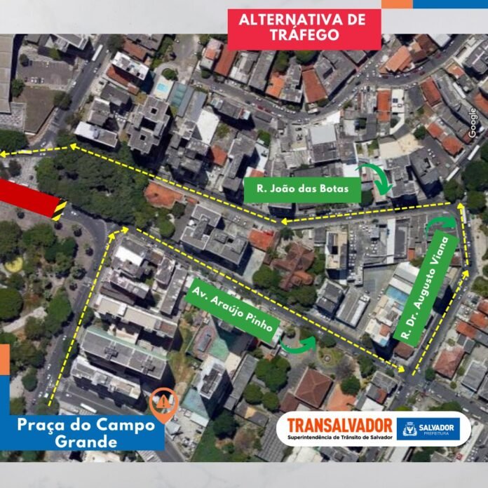 Para avanço das obras de requalificação que acontecem na região da Praça do Campo Grande, um trecho da via principal que fica em frente ao Teatro Castro Alves (TCA) terá o trânsito bloqueado no próximo mês de janeiro. Nesta primeira etapa, a interdição, que não afeta a via marginal e seria realizada nesta terça (26) e na quarta-feira (27) à noite, foi adiada para data a ser informada em breve. O bloqueio será necessário para um serviço de fresagem, realizado por equipes da Secretaria Municipal de Manutenção (Seman).