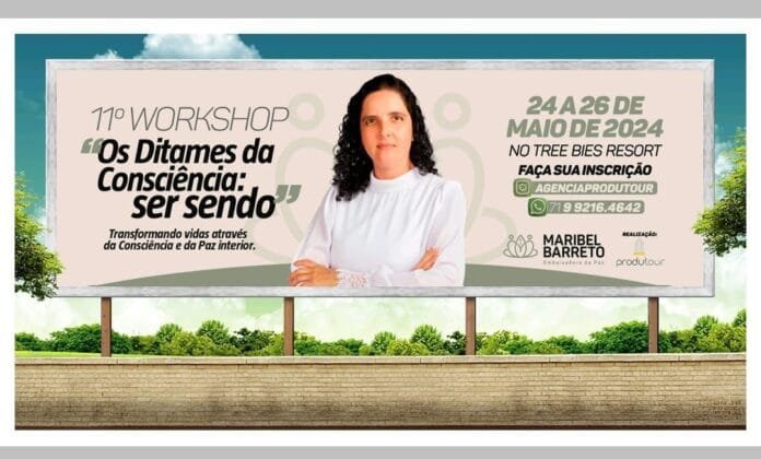 De 24 a 26 de maio, Maribel Barreto, em parceria com a Agência Produtour, vai promover o 11o Workshop “Os Ditames da Consciência: ser sendo” no Tree Bies Resort, em Subaúma, no Litoral Norte baiano, a menos de 2h de Salvador. Na ocasião, os participantes vão vivenciar uma experiência inédita para o desenvolvimento da Consciência. “Para termos músculos no corpo, necessitamos realizar práticas de musculação, da mesma maneira, para desenvolvermos nossa capacidade de atenção, de concentração, de auto-observação, enfim, de paz interior, necessitamos realizar exercícios de centração, interioridade e introspecção”, garante a Embaixadora da Paz pela UPF/ONU. O local paradisíaco e a programação criada pela experiente anfitriã favorecem a introspeção e o processo de autoconhecimento, com o propósito de auxiliar os participantes na busca de um viver mais leve, harmônico e pacífico, diante dos desafios cotidianos.